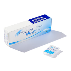 1-DAY ACUVUE MOIST contact lenses provide fresh, comfortable vision all day long with the convenience of a new lens every day. Featuring LACREON® Technology to lock in moisture and an INFINITY EDGE™ design for a natural fit, these lenses keep eyes hydrated, healthy, and protected with UV blocking.